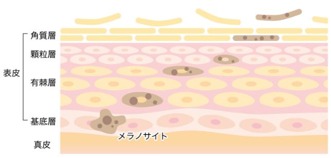 「基底層」「有棘層」「顆粒層」「角質層」